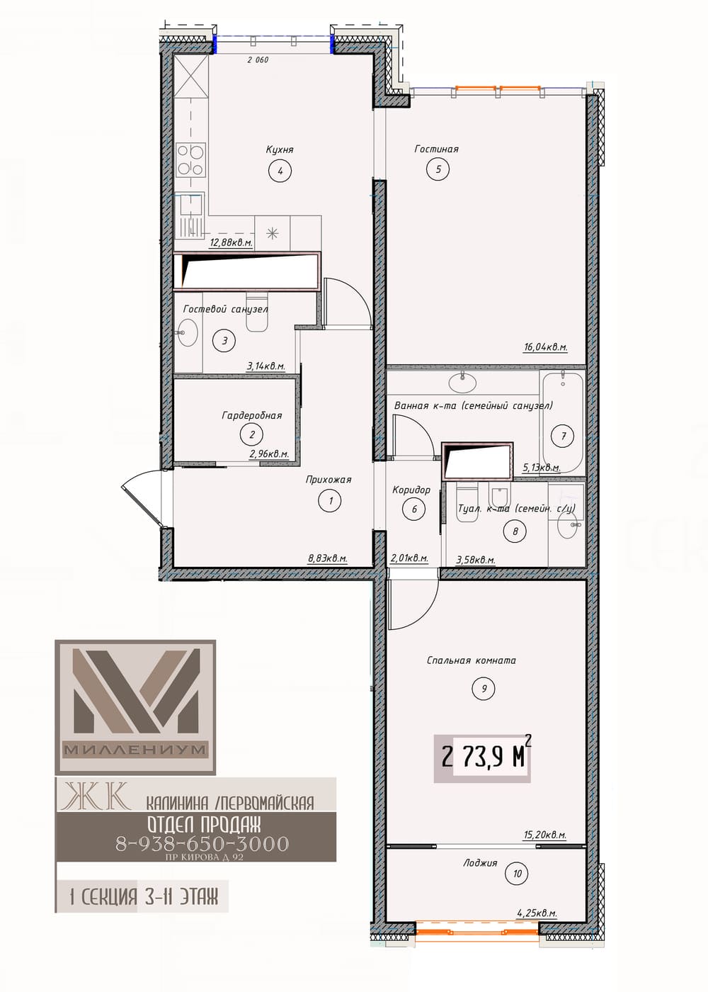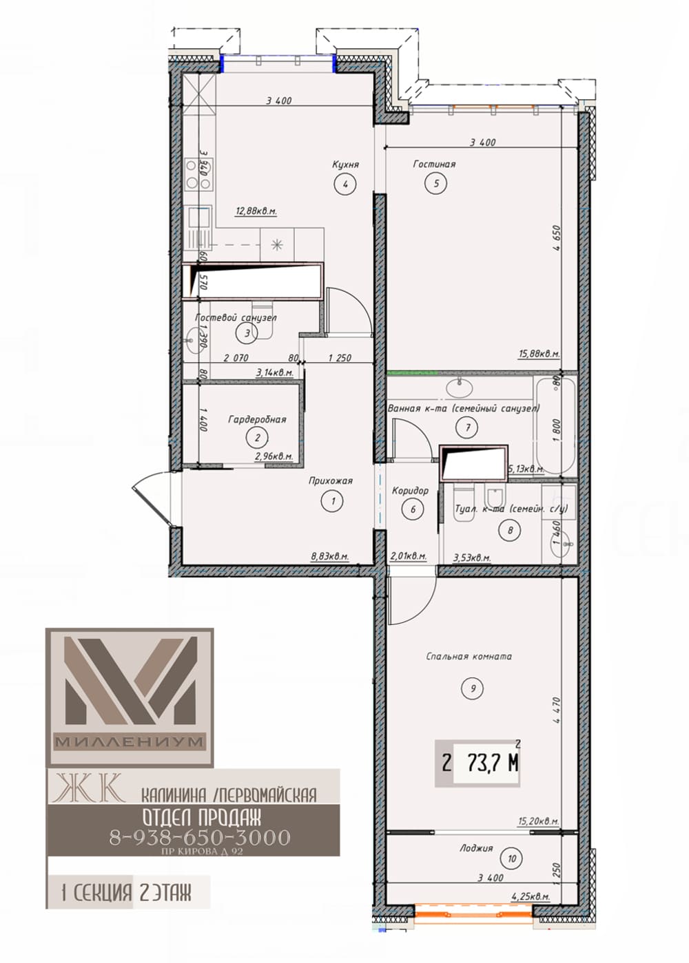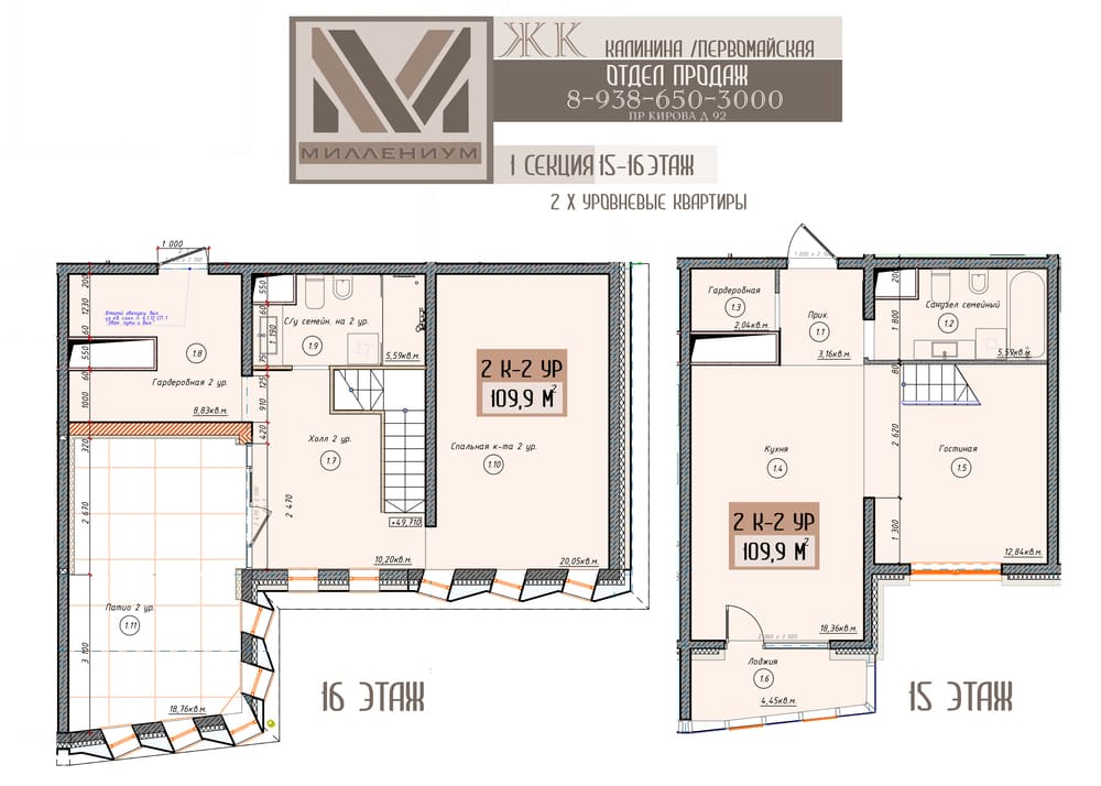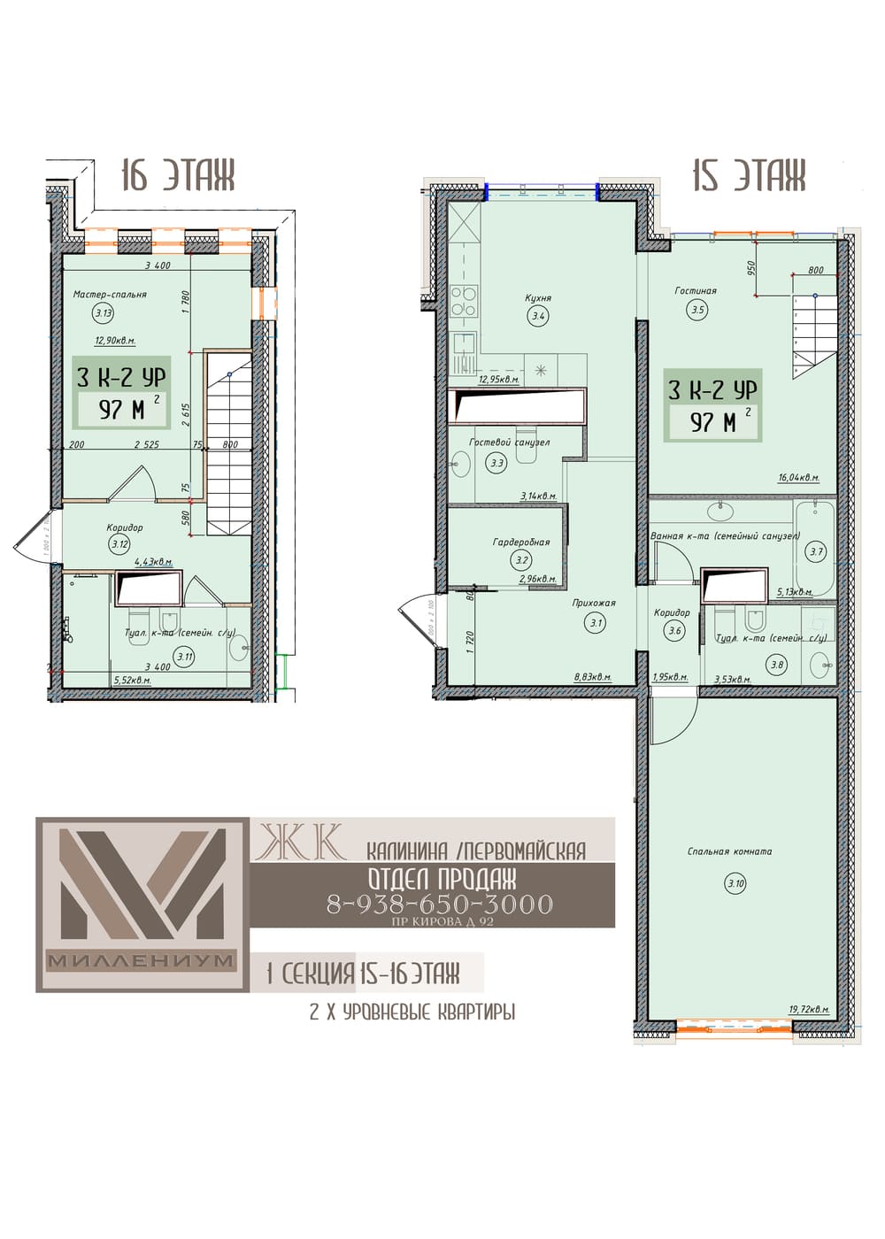 16-этажная секция №1 — это уникальная часть премиального ЖК «Миллениум», где сочетаются лучшие черты современного комфорта и выгодного расположения в сердце Пятигорска. Здесь представлены эксклюзивные двухуровневые квартиры с панорамными видами на Эльбрус и Кавказский хребет, где каждая деталь создана для жизни премиум-класса.