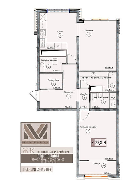 2-комнатная квартира 73.9 кв.м