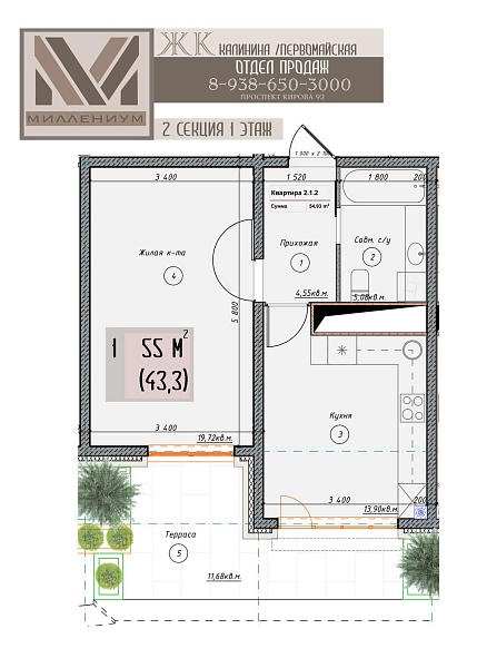 55 кв.м.