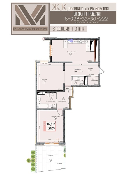 2-комнатная 2-уровневая квартира 109.9 кв.м