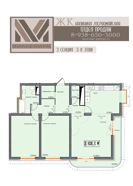 3-комнатная квартира 108.3 кв.м (3)