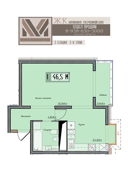 1-комнатная квартира 46.5 кв.м (10)