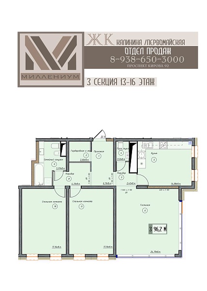 3-комнатная квартира 96.2 кв.м (14)